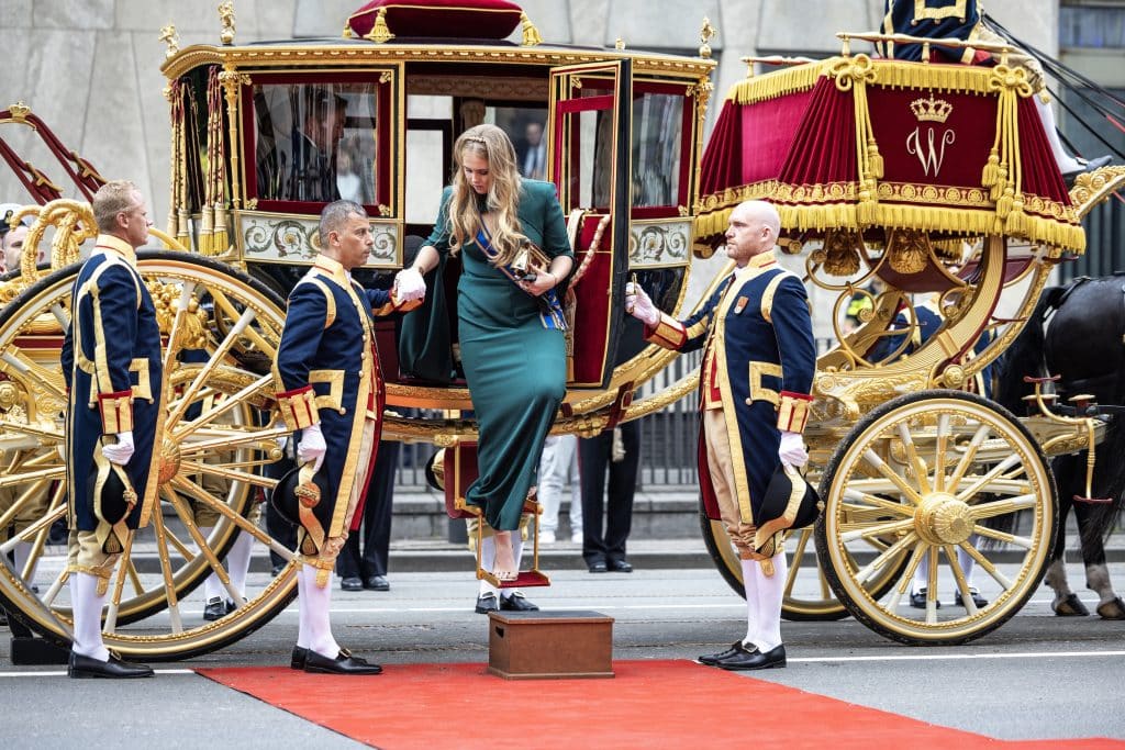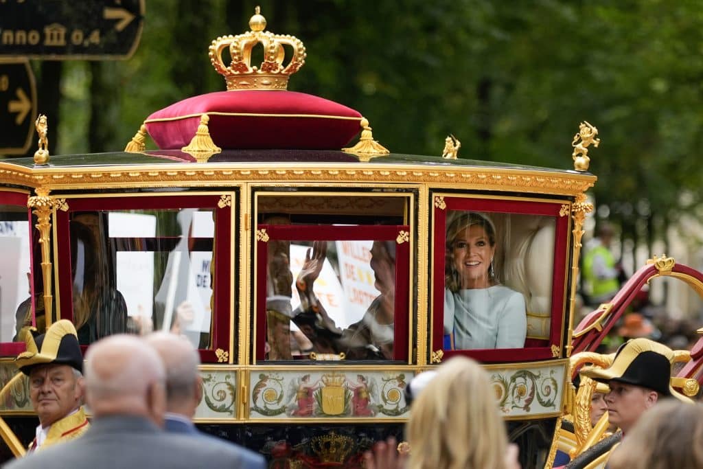 De koetsen met het koninklijk gezelschap zijn aangekomen bij de Koninklijke Schouwburg, waar koning Willem-Alexander (57) de troonrede zal uitspreken. Fotografen hebben vastgelegd hoe de royals alles uit de kast hebben gehaald om er stralend uit te zien.