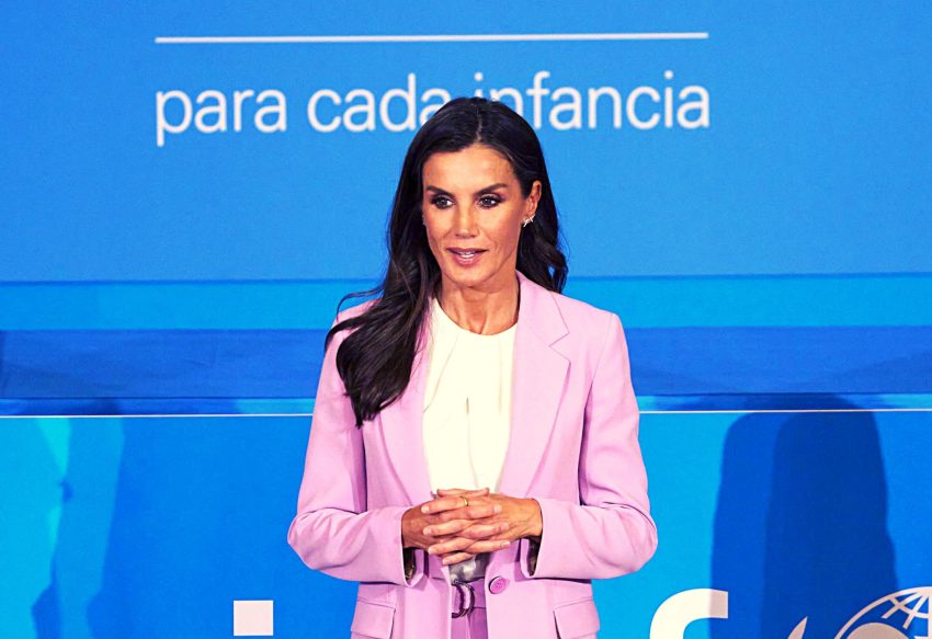 Letizia deed dat op de Unicef Awards in een pastelroze Hugo Boss-pak, om haar leven als working girl te benadrukken. Sensationeel!