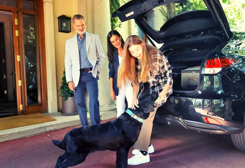 We kennen de foto’s waarop prinses Sofia afscheid neemt van koning Felipe, koningin Letizia en zwarte Labrador Jan.