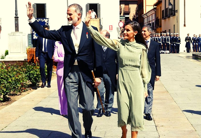 Bij de uitreiking van de Cervantes-prijs, samen met koning Felipe, droeg koningin Letizia goddelijk groen.