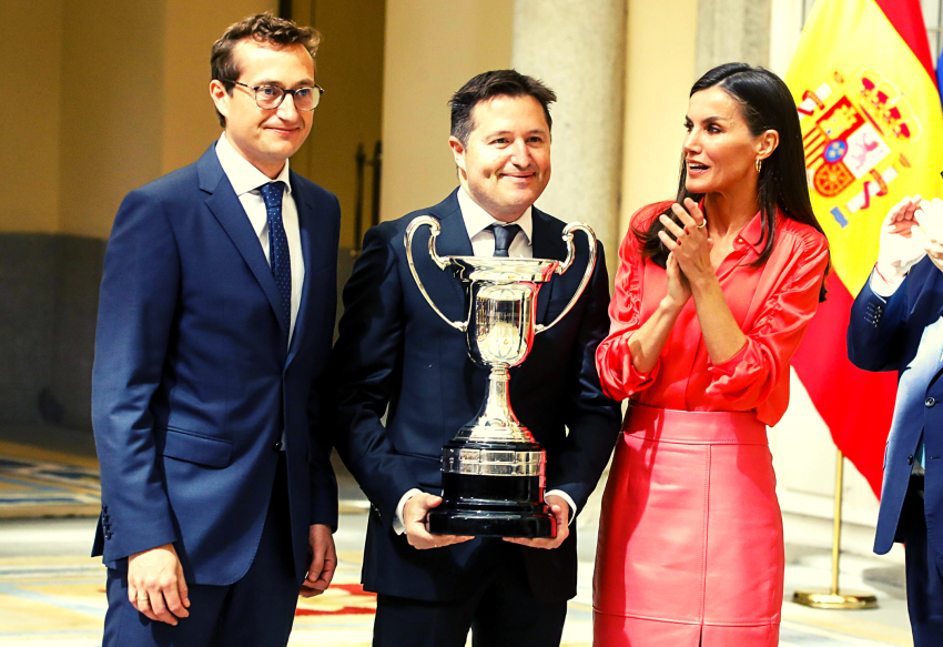 Letizia reikte in het koninklijke paleis in Madrid samen met koning Felipe de jaarlijkse sportprijzen uit.
