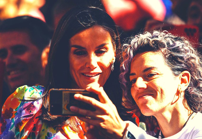 Letizia ontkwam er niet aan dat ze met veel Spaanse fans een selfie moest laten maken. Daar zat ze trouwens totaal niet mee, het was van begin tot eind een feestelijk bezoek, met zelfs gejuich voor de koningin.
