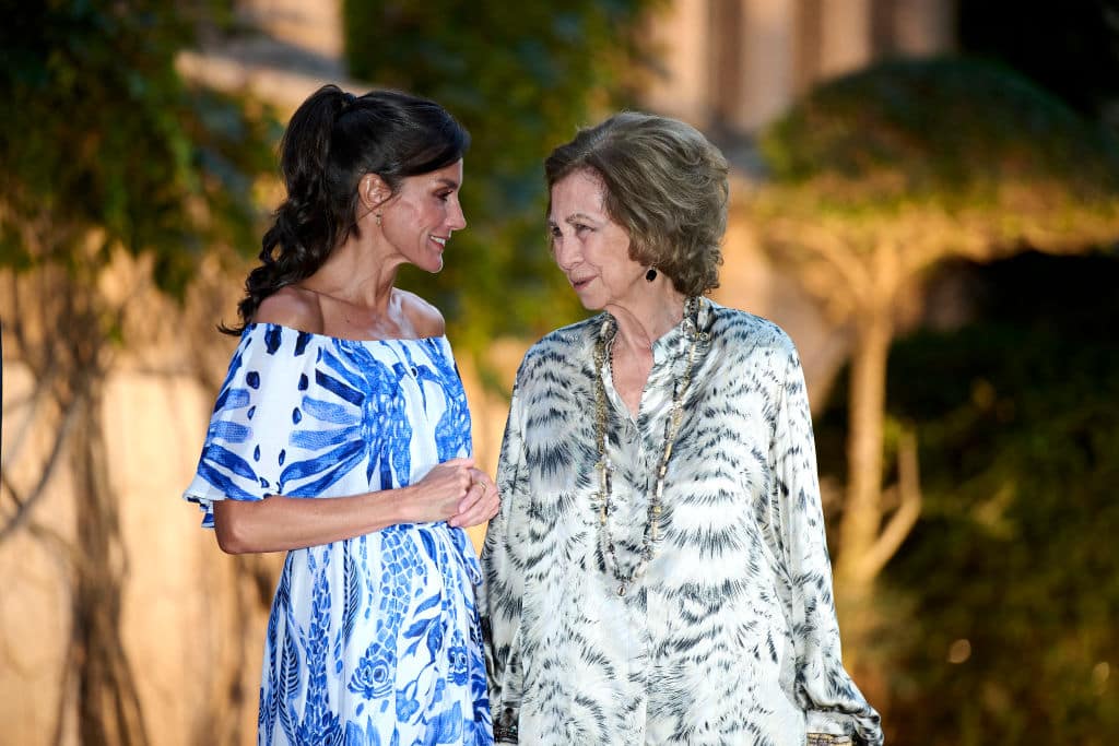 Koningin Letizia was naast haar schoonmoeder koningin Sofia en koning Felipe een plaatje in schitterend wit en blauw.