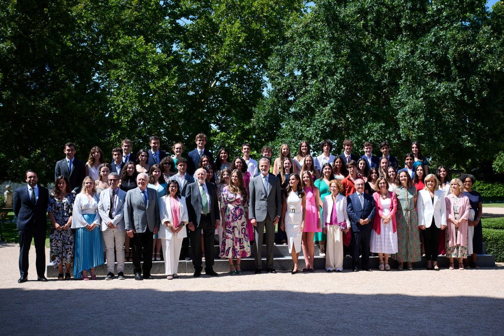 Bij een audiëntie dit keer, thuis in de tuin van paleis Zarzuela, voor scholieren en sponsoren. Leuk voor prinses Sofie, die wat praktische tips kon ophalen over het UWC Atlantic, waar ze na de zomer beging.