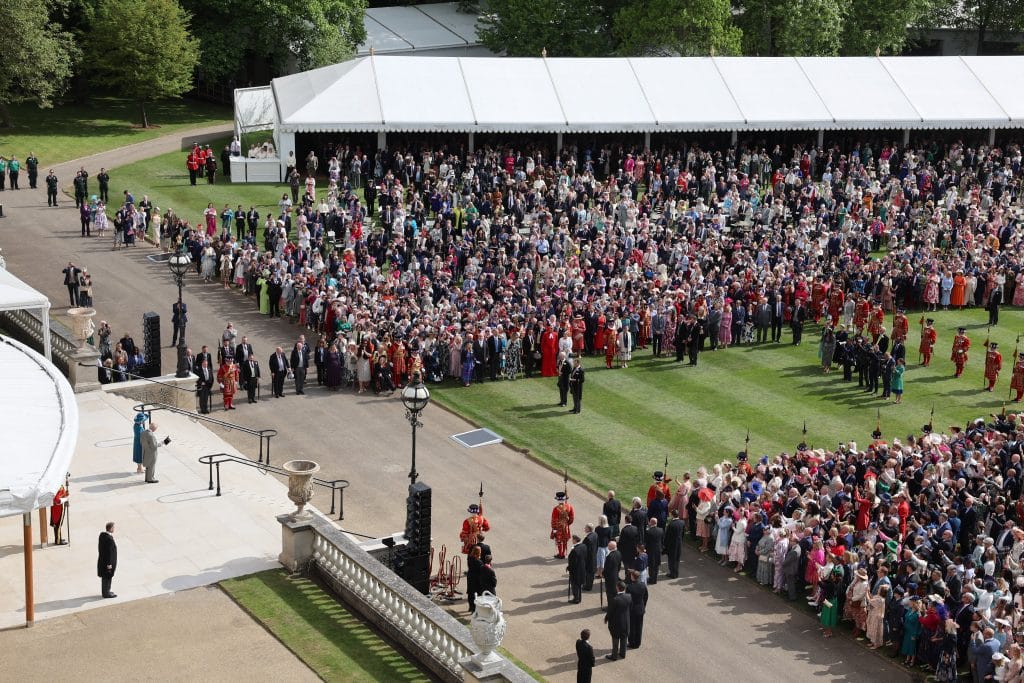 Voordat het feest van start ging, verschenen Charles en Camilla op het bordes terwijl het Britse volkslied klonk. Vervolgens mengden zij zich, samen met andere leden van de koninklijke familie, onder de aanwezigen om hen persoonlijk te spreken. Ook prinses Anne, prins Edward en zijn vrouw Sophie maakten hun opwachting.