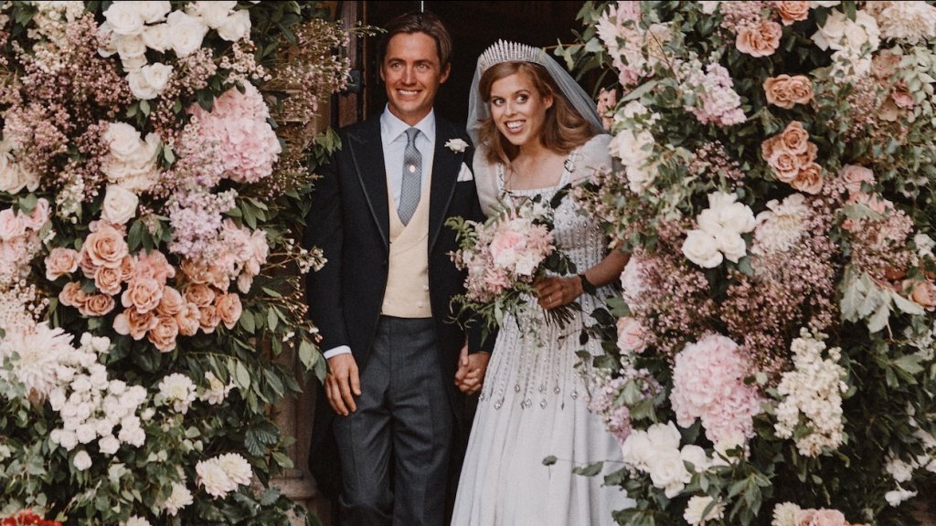 In Corona-tijd trouwde ze stilletjes met haar Edoardo. Omdat haar vader toen al in ongenade was gevallen, werd hij weggelaten uit de trouwfoto’s. Beatrice droeg een (vermaakte) vintage jurk van haar eigen oma, Elizabeth!