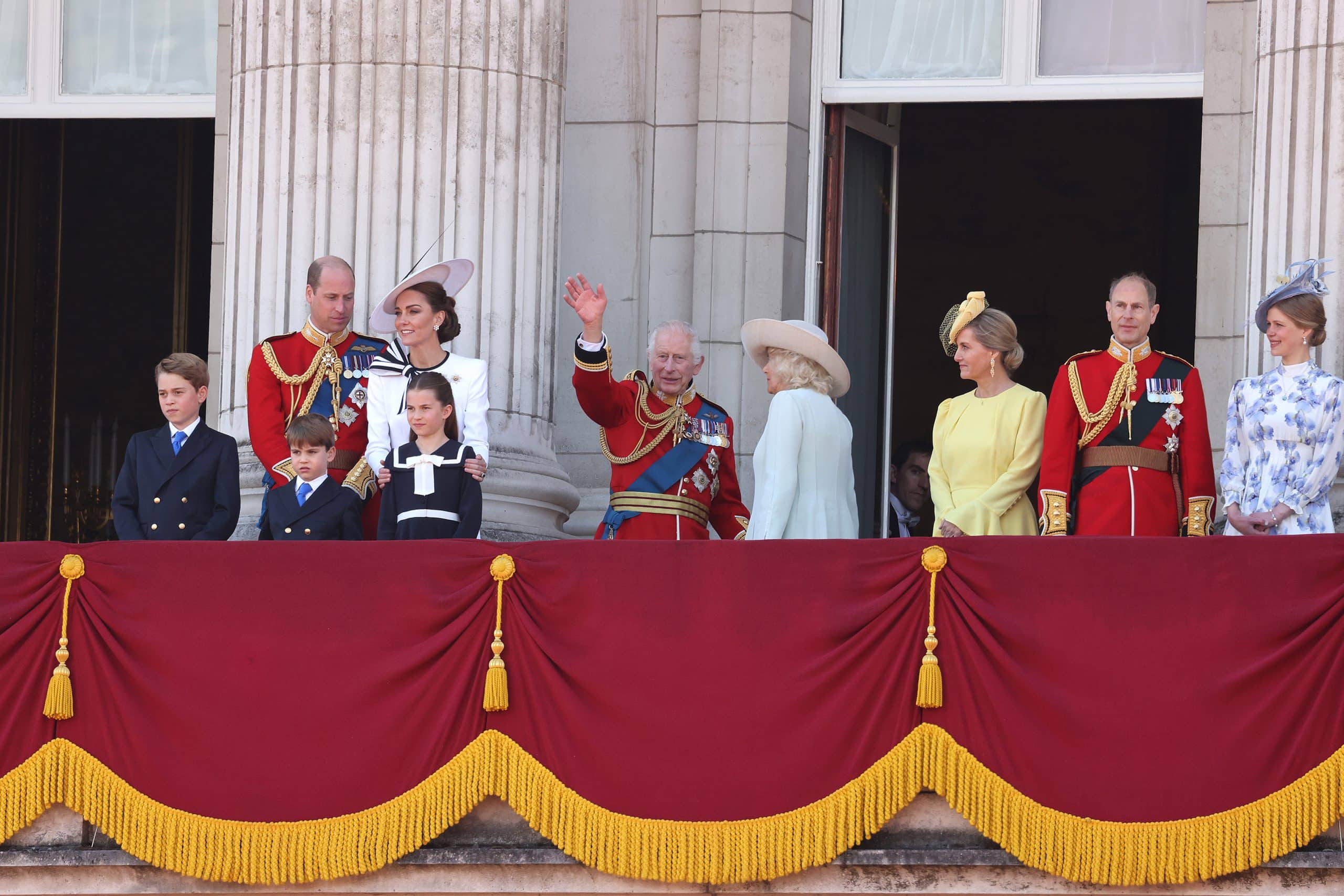 Het enige verschil tussen het balkonscène van vorig jaar en dit jaar bij Trooping the Colour was de toevoeging van Lady Louise. Opvallend afwezig beide jaren was prinses Alexandra, de eerste nicht van koningin Elizabeth, die 87 jaar oud is maar technisch gezien nog steeds een senior werkende royal.