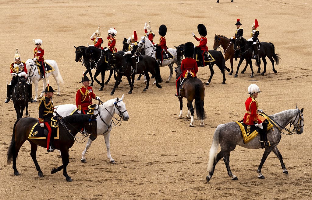 In hartje Londen zijn zaterdag honderden Britse militairen in formatie gegaan voor de generale repetitie van ‘Trooping the Colour’, de traditionele militaire parade ter ere van de verjaardag van de monarch. Wij zetten de foto’s onder elkaar.
