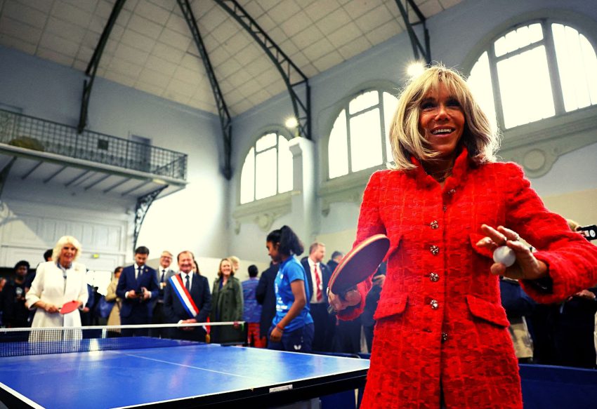 Alleen – de gasten laten winnen bij een vriendschappelijk potje pingpong, dat ging mevrouw Macron te ver, toen ze tegen koningin Camilla speelde.
