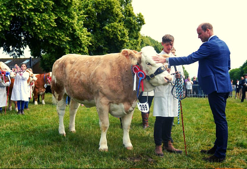 Scholieren bereidden prins William een ongekend warm welkom bij een landbouwshow in Norfolk, waar hij bij verrassing opdook.