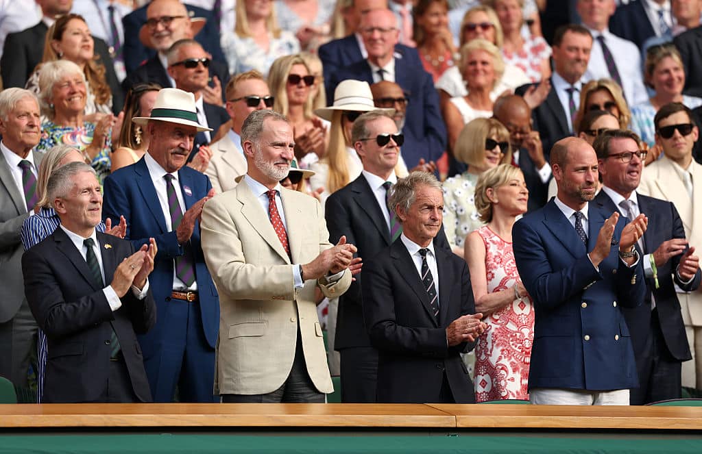 Niet alleen het Britse koningshuis was zondag goed vertegenwoordigd in de koninklijke loge. Ook de Spaanse koning Felipe woonde de finale bij.