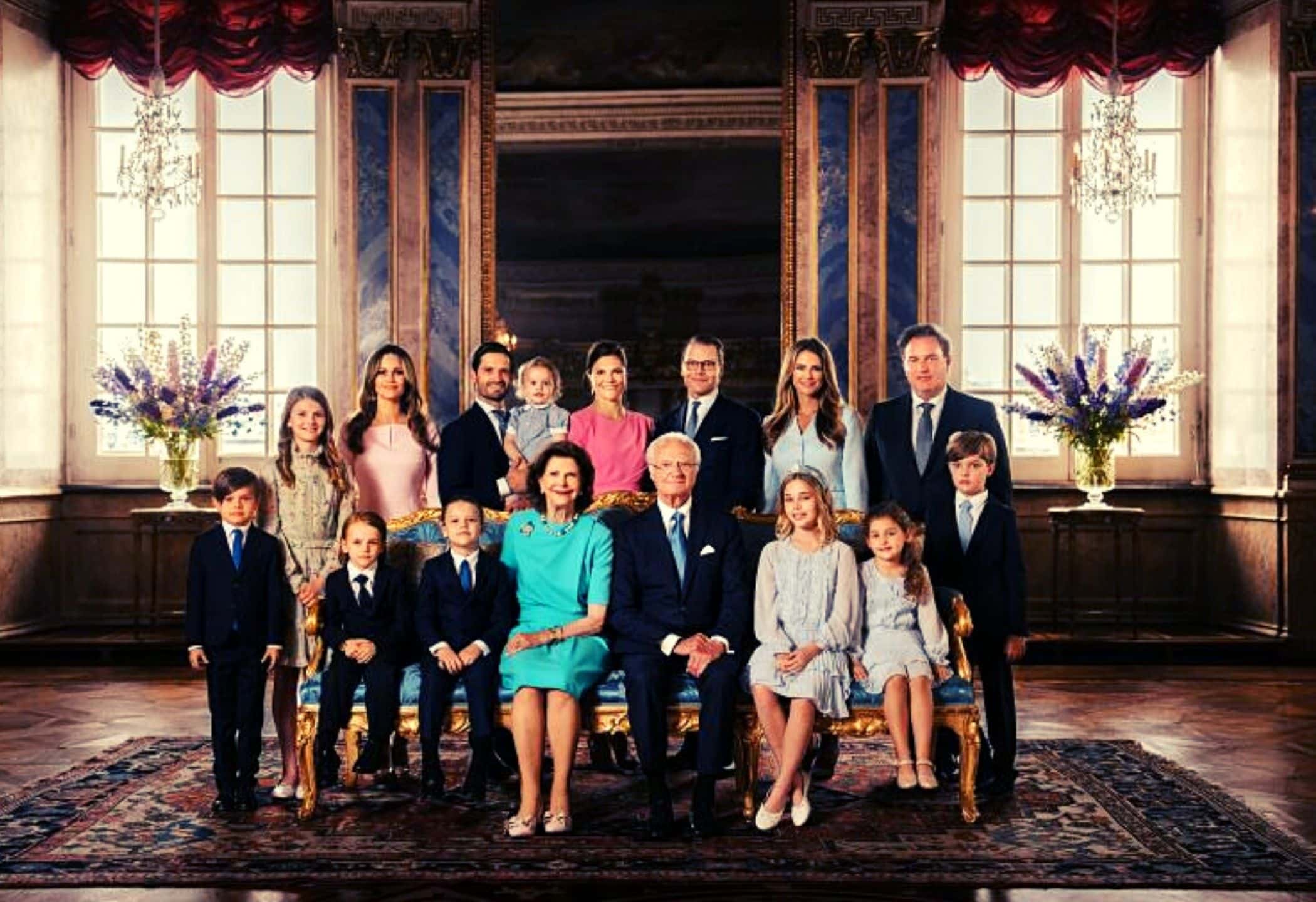 Dat maken we althans op uit een familieportret dat op de site van het koninklijk huis – kungahuset – staat en gemaakt is in het koninklijk paleis in Stockholm. En waar dus iedereen op staat. Mooi op tijd voor het grote feest dat op punt van beginnen staat, waarbij onder meer 50 jaar op de troon van koning Carl Gustaf wordt gevierd.