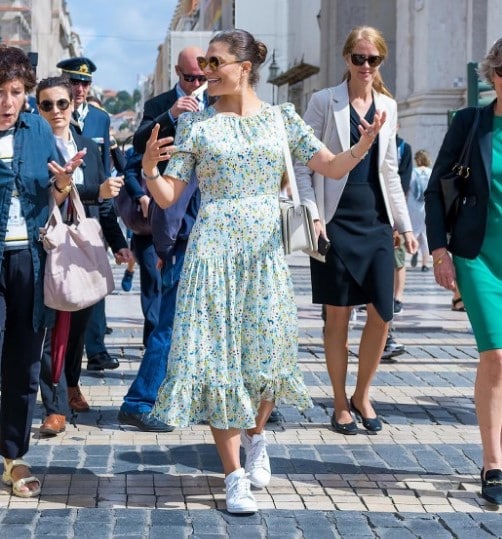 Bij een rondleiding door een oud klooster was ze zo verstandig stoere gympen aan te trekken. En zeg nou zelf: ze staan haar geweldig!