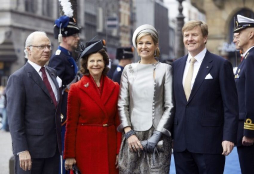 Het verhaal achter de foto is dat Carl Gustaf Pasen 1968 mee deed aan een skiwedstrijd. De andere deelnemers waren verkleed en Carl Gustaf deed gezellig mee. Je had toen nog geen internet, dus kwaad kon het niet. Maar iedereen lacht er nu om, we nemen aan ook Silvia en Carl Gustaf.